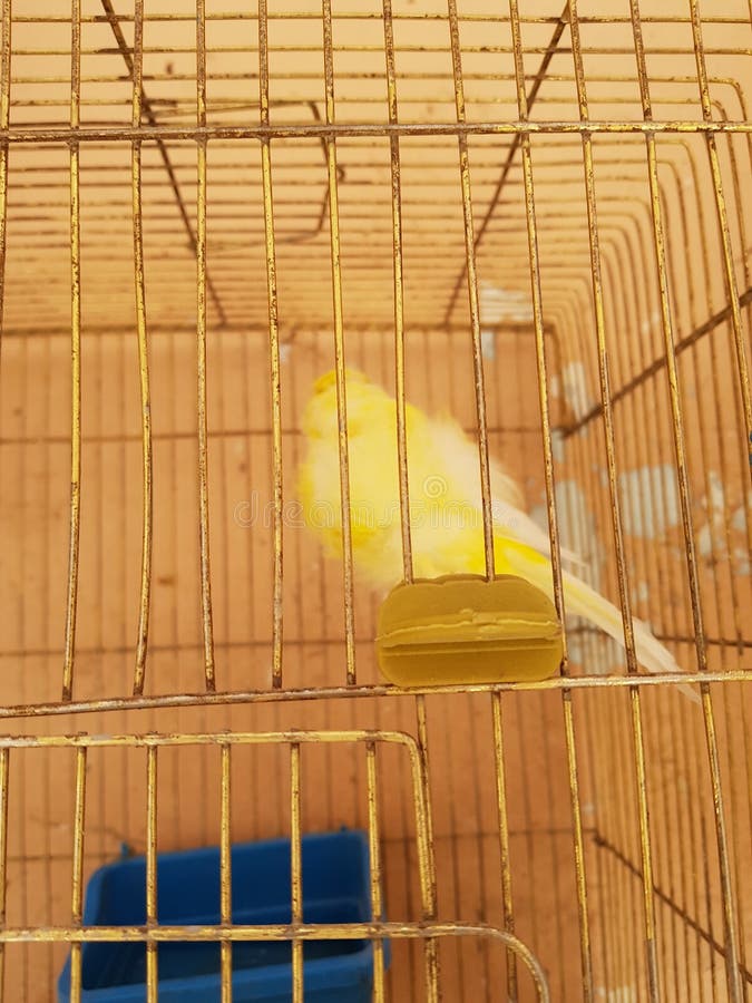 Yellow canary bird in cage