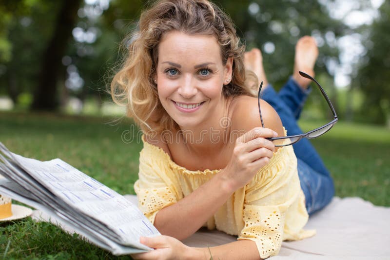 Young girl lying on grass in park. young girl lying on the grass in the park